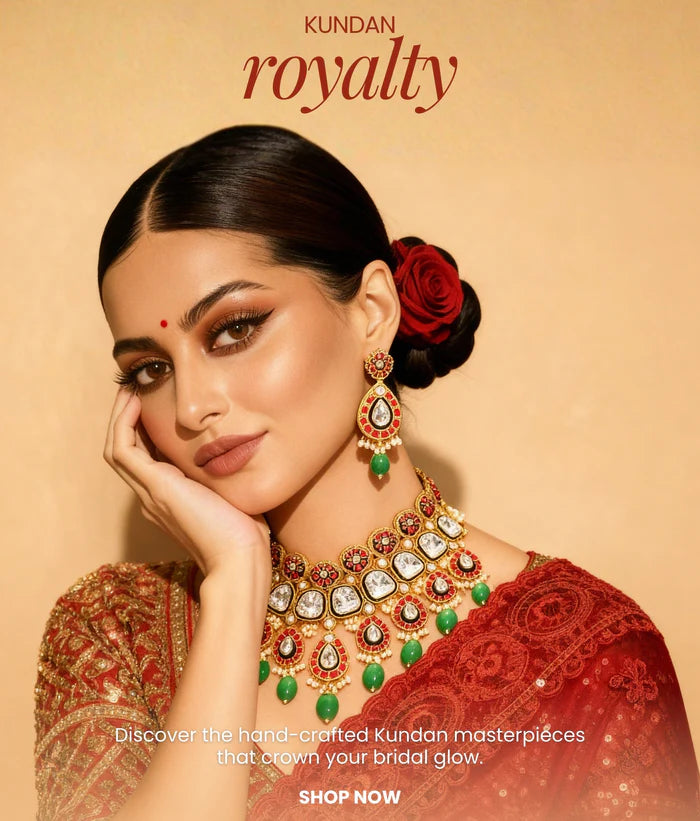 Gold-Plated Multi-Color Stone & Kundan Studded Chandbali Earrings With Beads